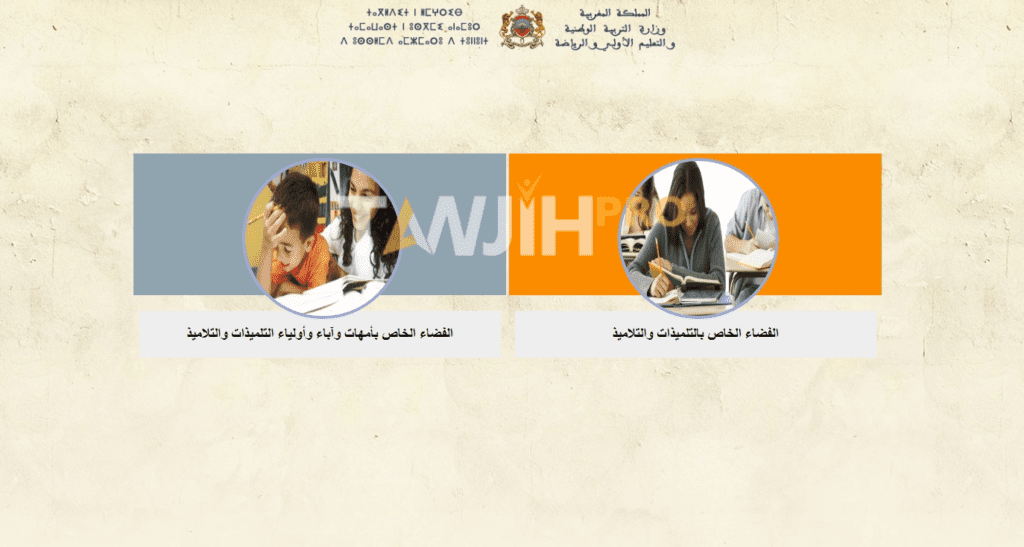 يتم الولوج إلى الفضاء الإلكتروني للنظام عبر الموقع الرسمي: https://moutamadris.men.gov.ma/