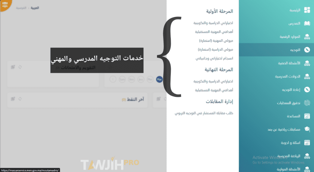 3. خدمات التوجيه المدرسي والمهني في منصة مسار متمدرس 2025