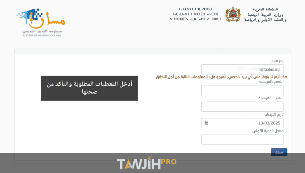 1. الحصول على معطيات الدخول لمنصة مسار متمدرس 2025: