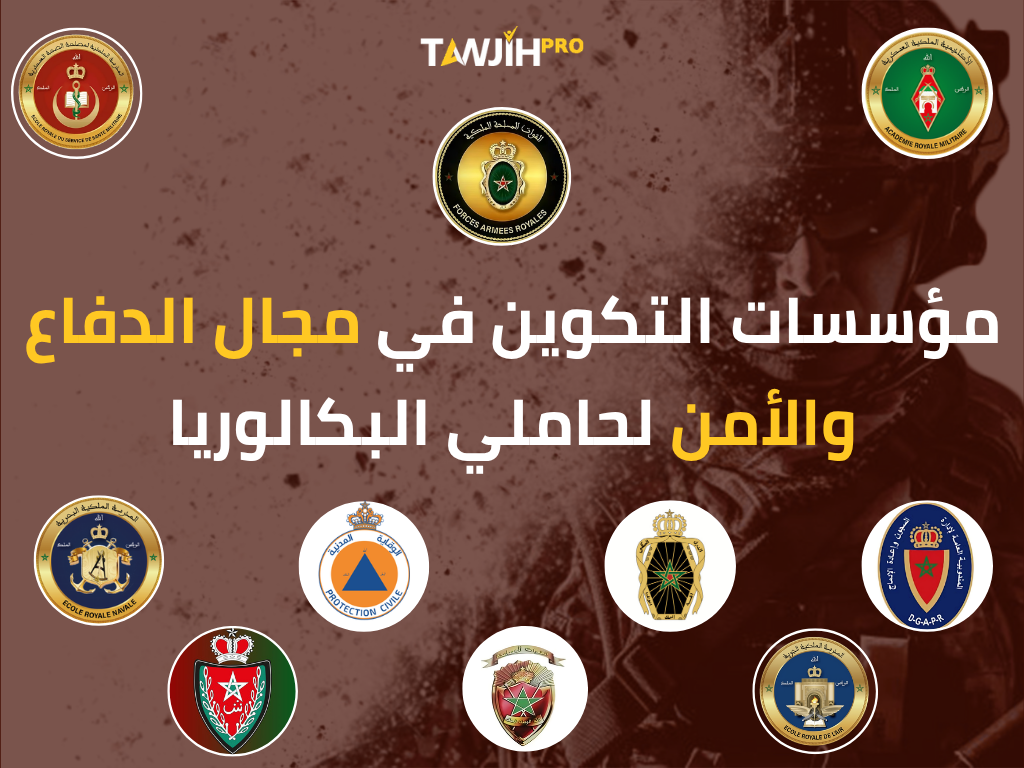 بعد الحصول على شهادة البكالوريا، يفتح مجال الدفاع والأمن أمام التلاميذ مجموعة من المؤسسات المتخصصة التي تهدف إلى تكوين أطر مؤهلة قادرة على تحمل مسؤوليات حماية الوطن والحفاظ على النظام العام. تتميز هذه المؤسسات بتكوين يجمع بين الانضباط العسكري، التأهيل البدني، والمعارف العلمية والتقنية، وفق برامج دقيقة تستجيب لمتطلبات القطاعات الأمنية والدفاعية. يختلف الولوج إلى هذه المسارات حسب الشروط والمعايير المحددة لكل مؤسسة، مما يجعل التعرف عليها خطوة أساسية لاختيار التوجيه المناسب وبناء مسار مهني واعد في خدمة المجتمع.