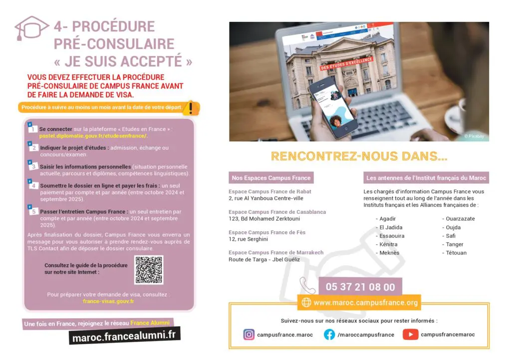 للالتحاق بإحدى المؤسسات التعليمية في فرنسا، يجب المرور بمجموعة من الخطوات عبر منصة Campus France. الإجراءات تتضمن: