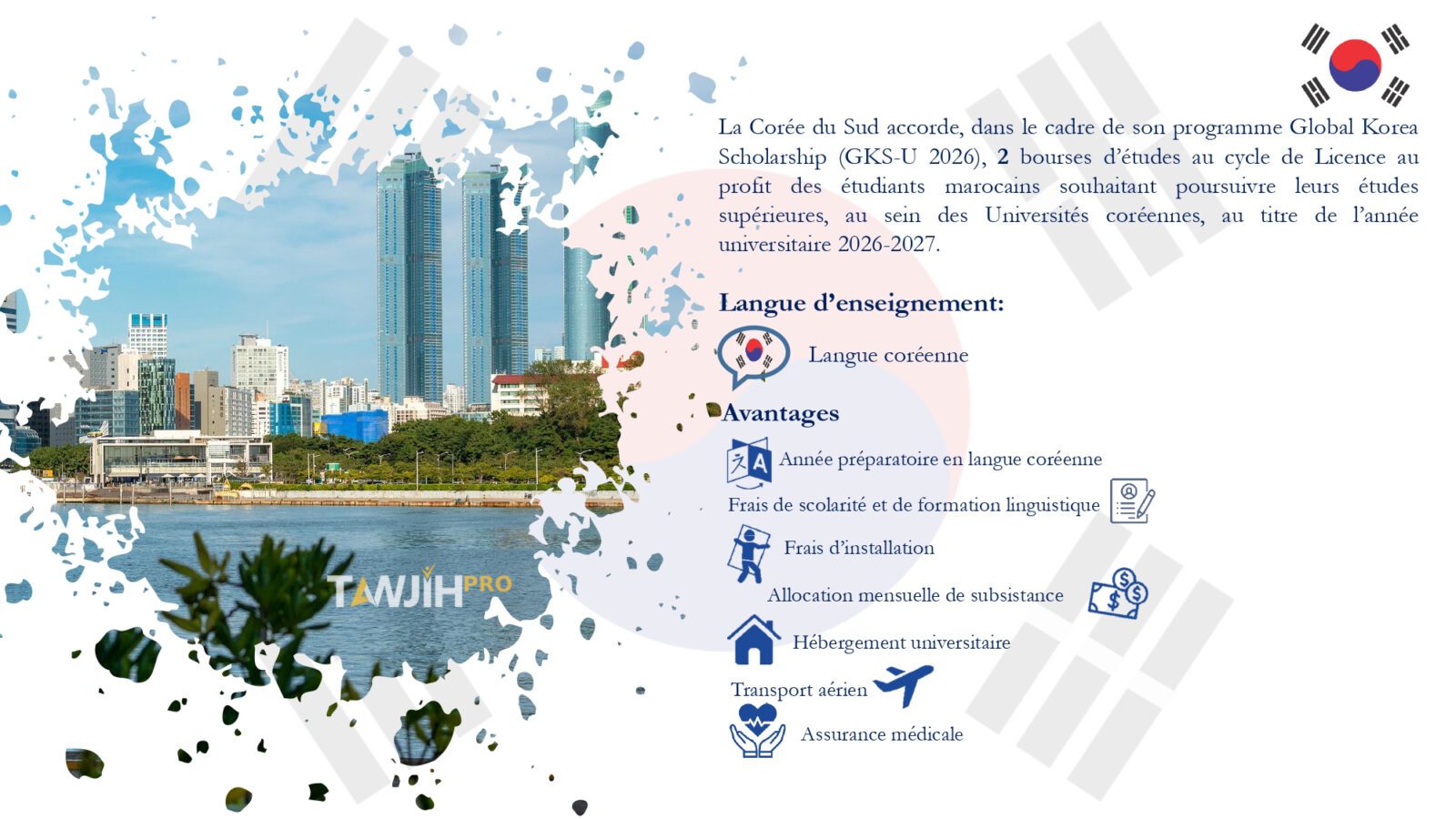 يبحث العديد من التلاميذ بعد الحصول على شهادة البكالوريا عن منح دراسية تفتح لهم أبواب تكوين جامعي متميز بالخارج. تتيح كوريا الجنوبية واحدة من أبرز الفرص المميزة: منحة Global Korea Scholarship (GKS-U 2026)، الموجهة للطلبة المتفوقين في سلك الإجازة.