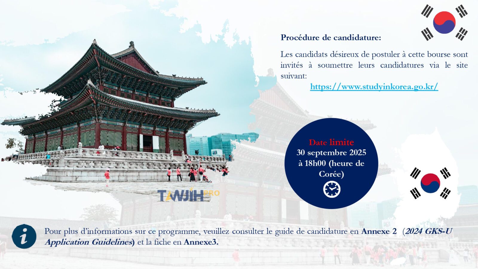 آخر أجل للتسجيل: 30 شتنبر 2025، على الساعة 18h00 بالتوقيت الكوري.