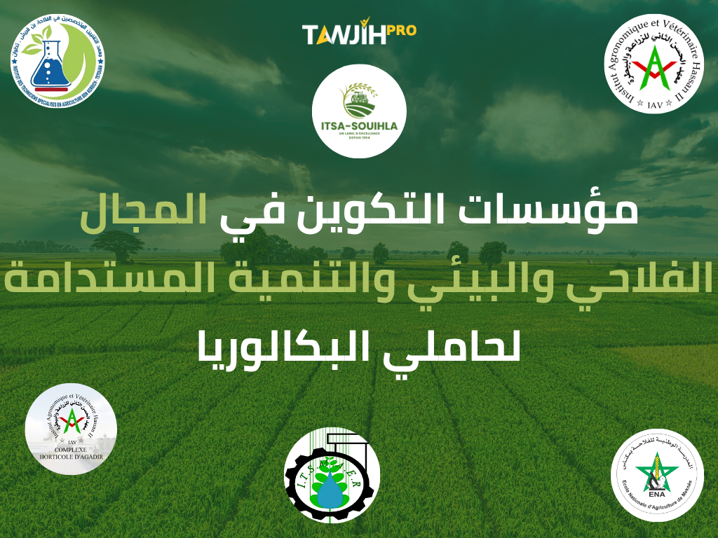 بعد الحصول على شهادة البكالوريا، يتيح نظام التعليم العالي لحاملي الشعب العلمية والتقنية مجموعة من مؤسسات التكوين المتخصصة في المجال الفلاحي، البيئي والتنمية المستدامة. تهدف هذه المؤسسات إلى إعداد أطر مؤهلة تمتلك معارف علمية وتقنية متقدمة، قادرة على مواجهة تحديات الزراعة الحديثة، حماية البيئة، وإدارة الموارد الطبيعية بطريقة مستدامة. يشمل التكوين دراسة العلوم الفلاحية، الغابية، البيئية، وتقنيات التنمية المستدامة، مع تكامل بين الجانب النظري والتدريب الميداني، مما يمكن الخريجين من الإسهام بفعالية في تطوير القطاع الفلاحي والحفاظ على البيئة.