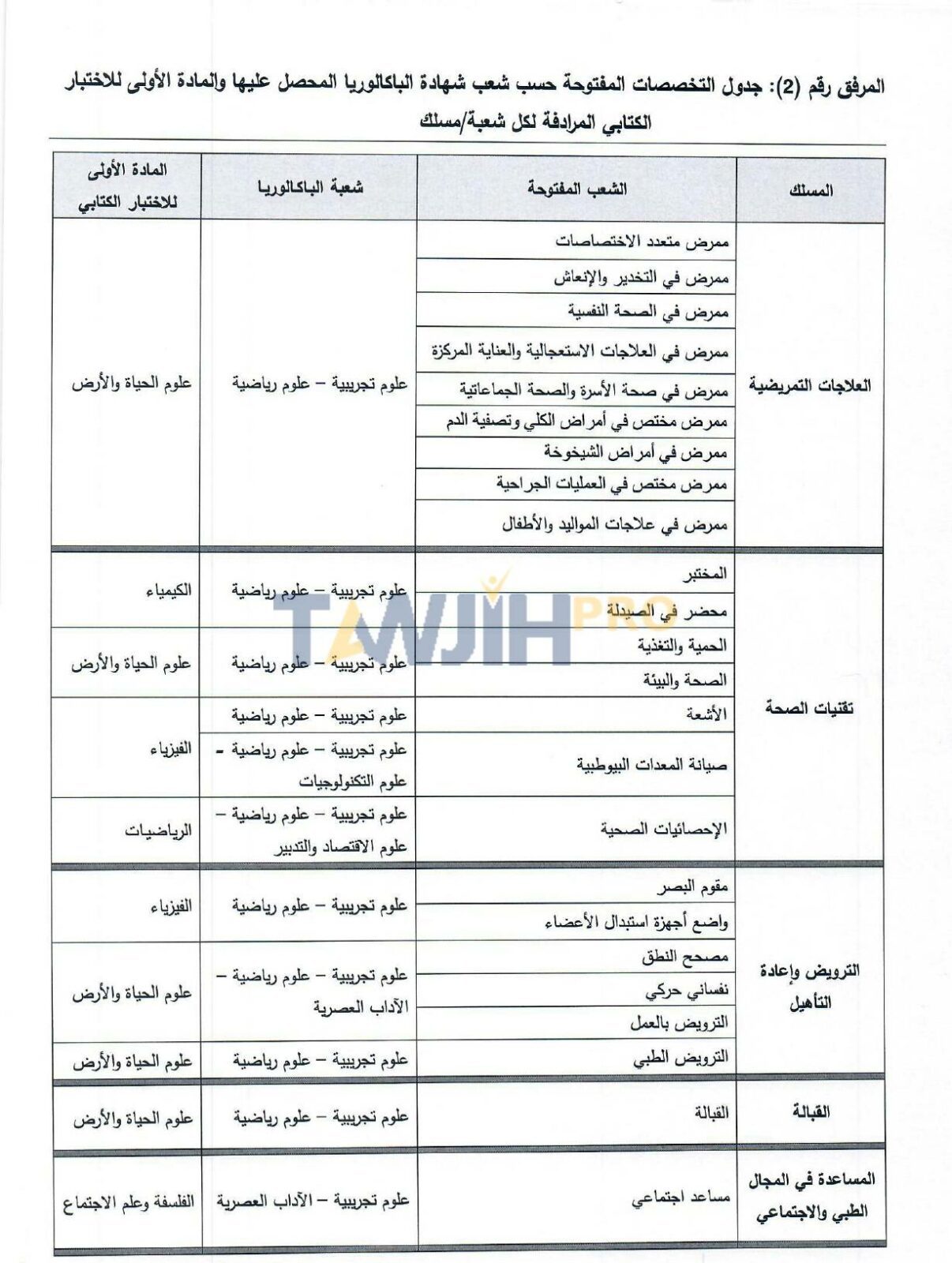 تفتح المباراة في وجه الحاصلين على شهادة البكالوريا أو شهادة معادلة لها، برسم دورتي 2024 و 2025، وذلك حسب شعب البكالوريا المحصل عليها، والمطابقة لكل مسلك أو شعبة كما هو موضح في الجدول المرفق: