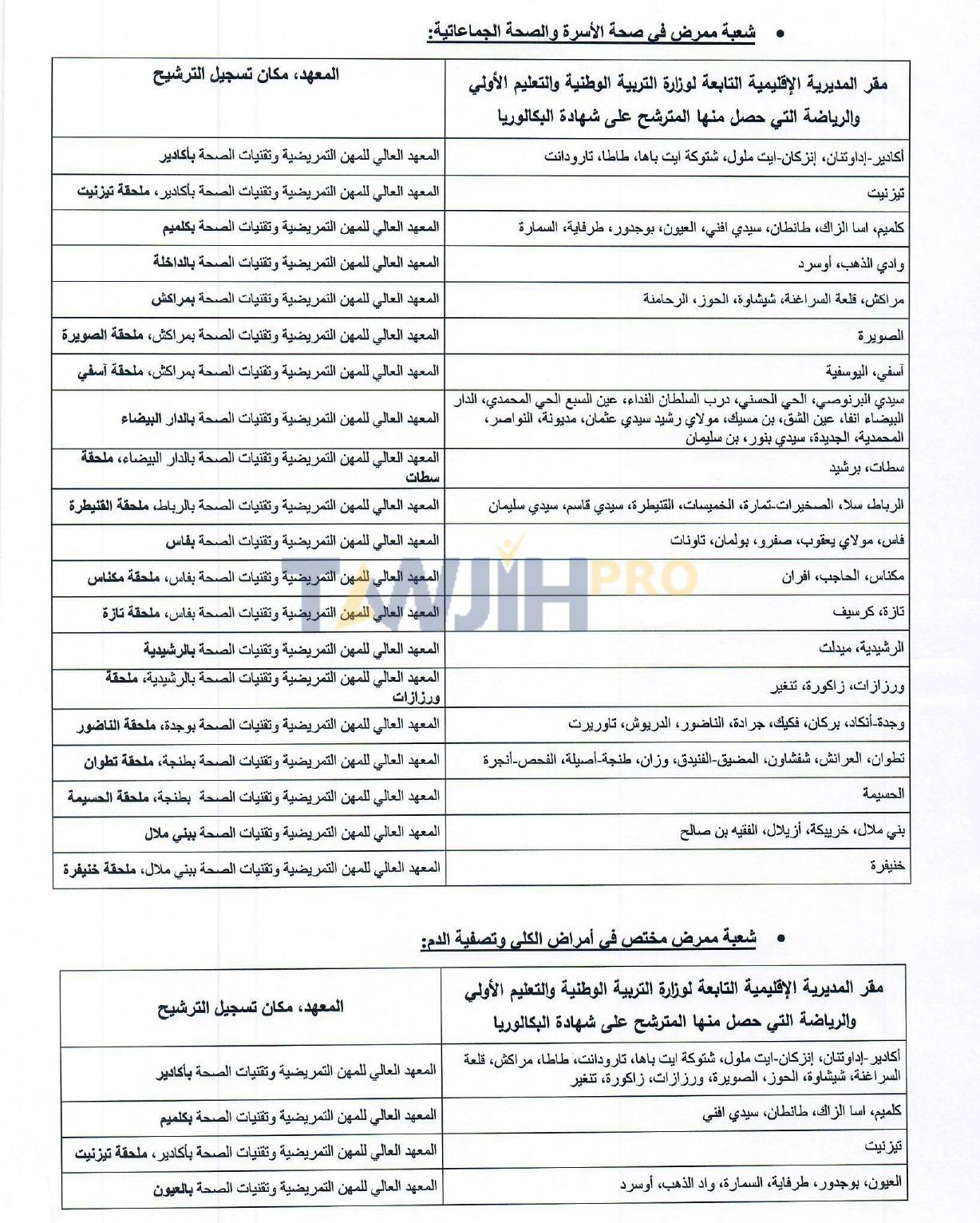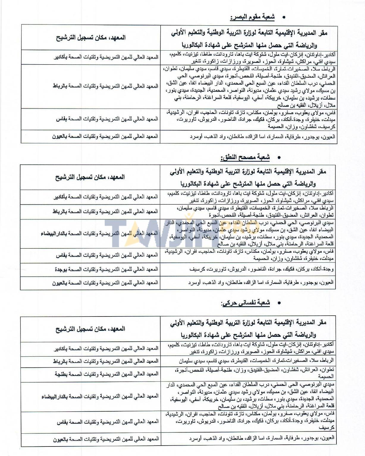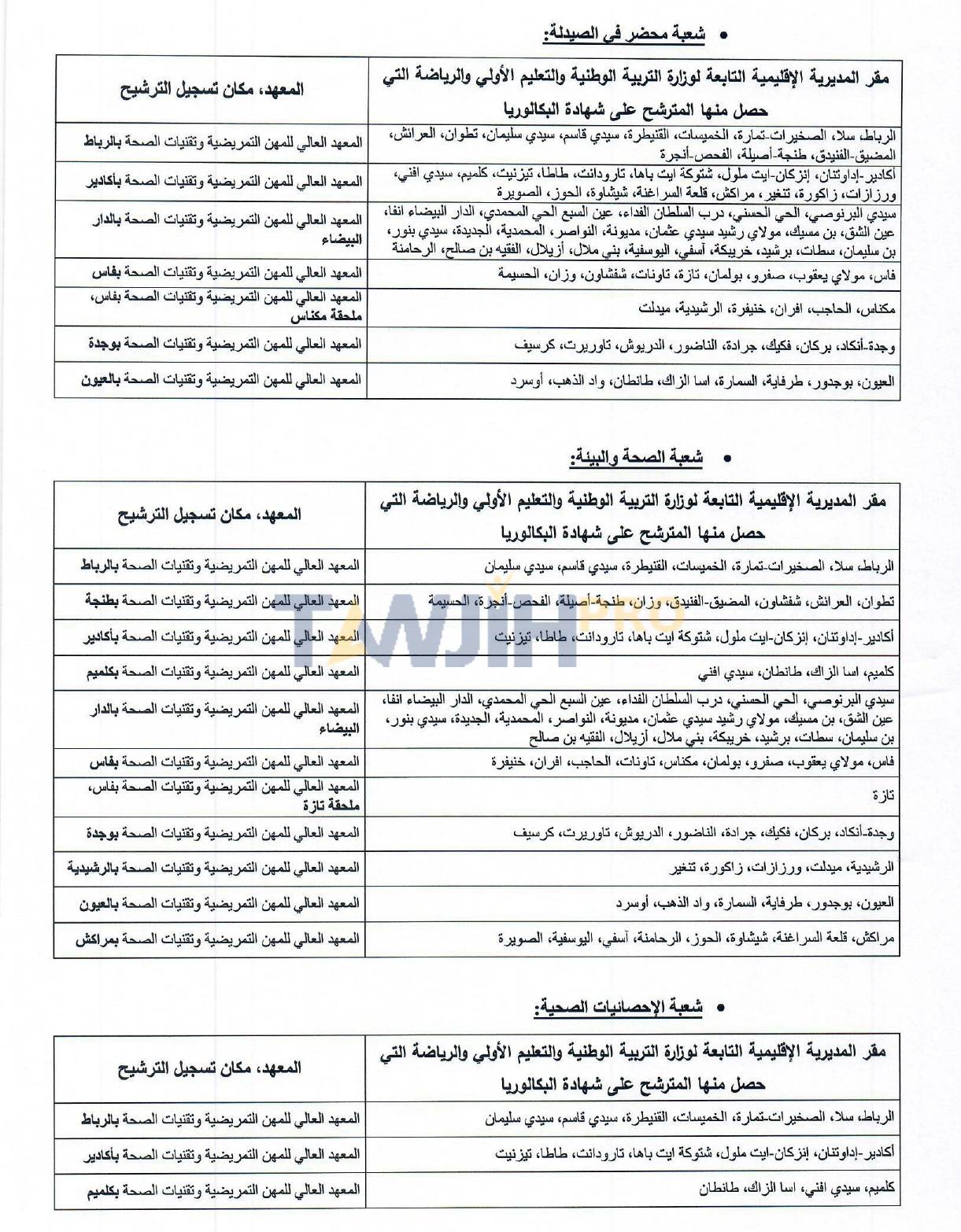 أعلنت وزارة الصحة أن مباراة ولوج سلك الإجازة بالمعاهد العليا للمهن التمريضية وتقنيات الصحة (ISPITS)، برسم السنة الدراسية 2025-2026، ستجرى يومي 20 و 21 شتنبر 2025، ابتداء من الساعة الثامنة والنصف صباحا بالمعاهد التالية وملحقاتها: