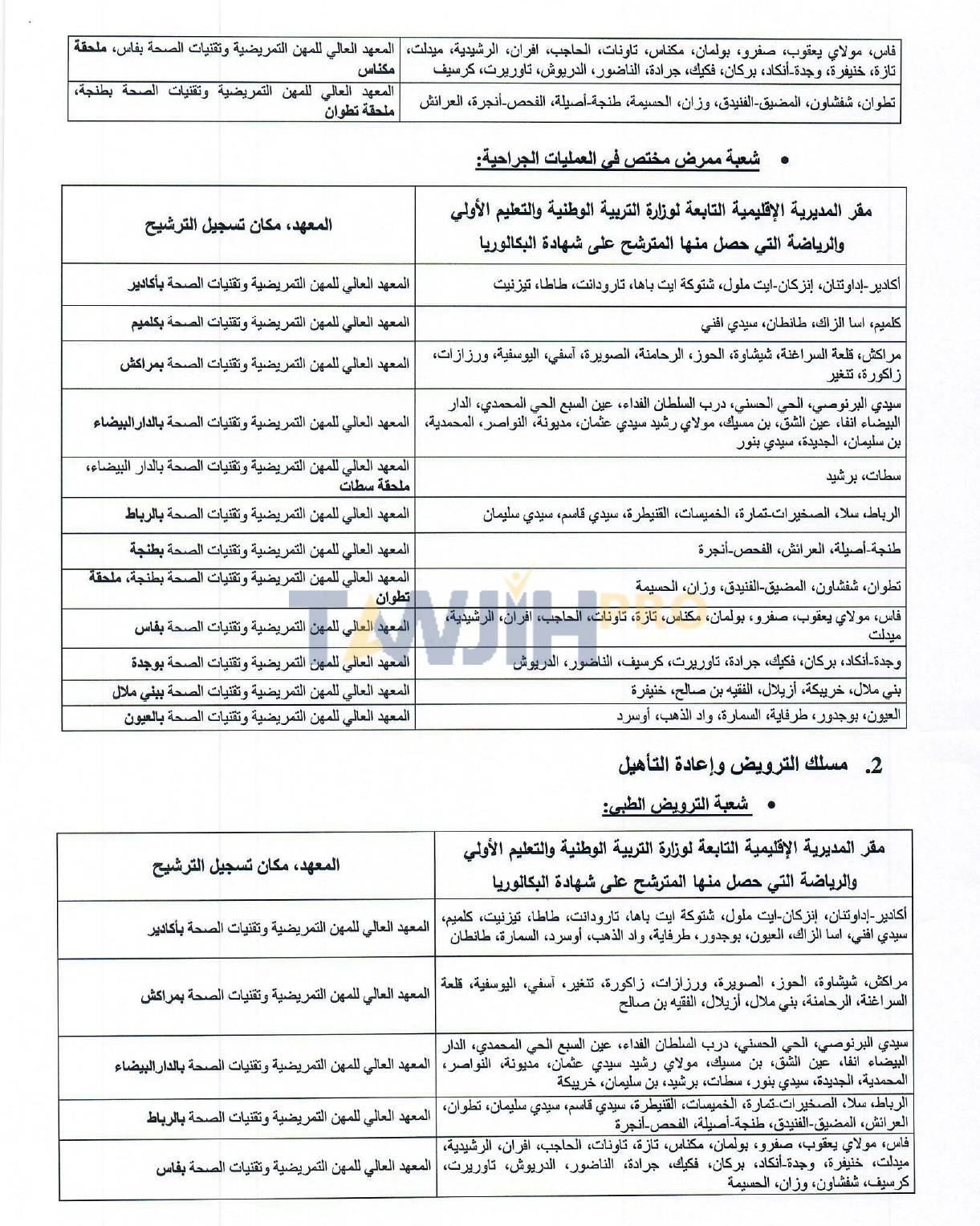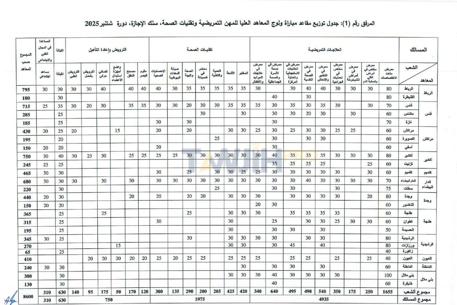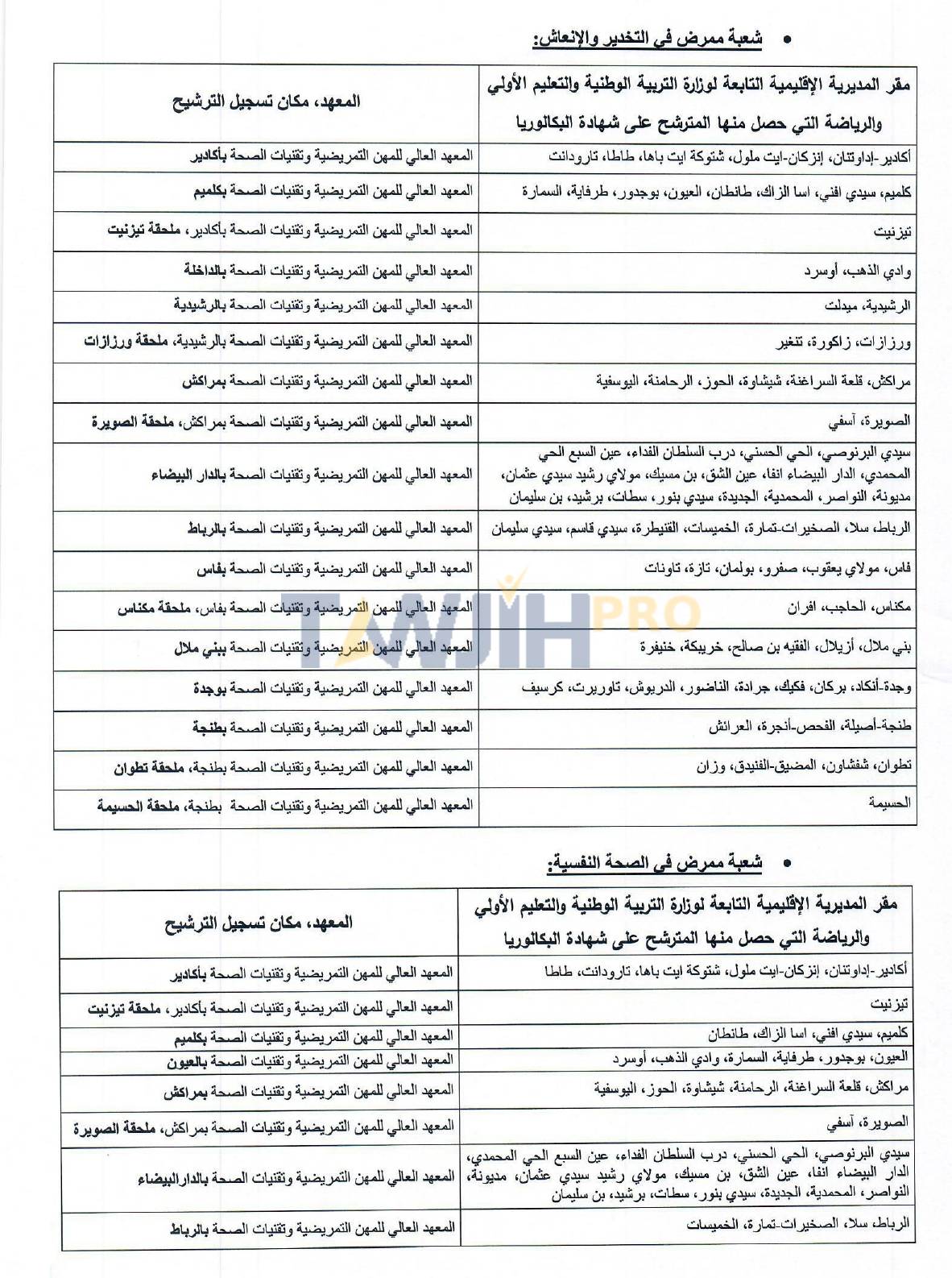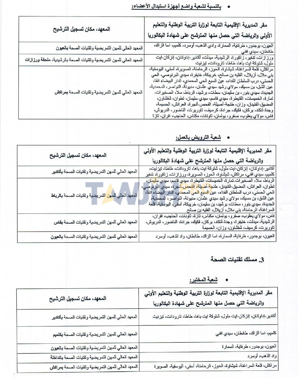 أعلنت وزارة الصحة أن مباراة ولوج سلك الإجازة بالمعاهد العليا للمهن التمريضية وتقنيات الصحة (ISPITS)، برسم السنة الدراسية 2025-2026، ستجرى يومي 20 و 21 شتنبر 2025، ابتداء من الساعة الثامنة والنصف صباحا بالمعاهد التالية وملحقاتها: