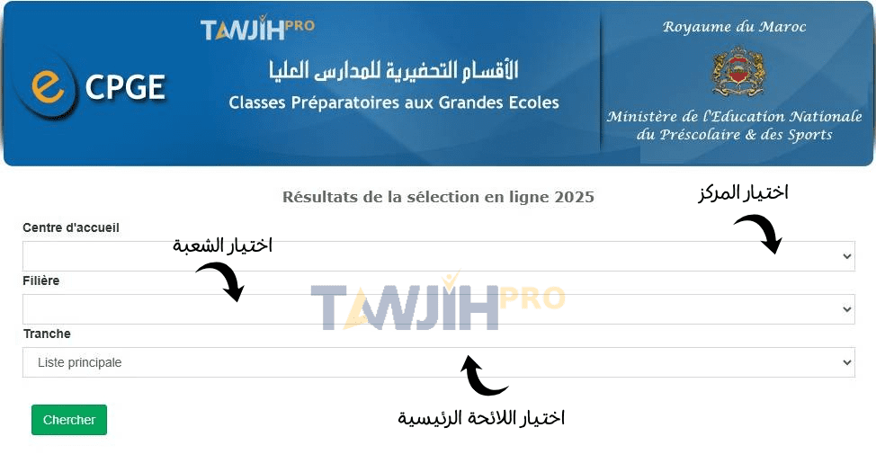 الصفحة الرئيسية لوائح المقبولين لولوج الأقسام التحضيرية للمدارس العليا 2025-2026