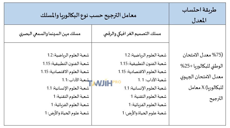6. طريقة احتساب المعدل لانتقاء المترشحين: