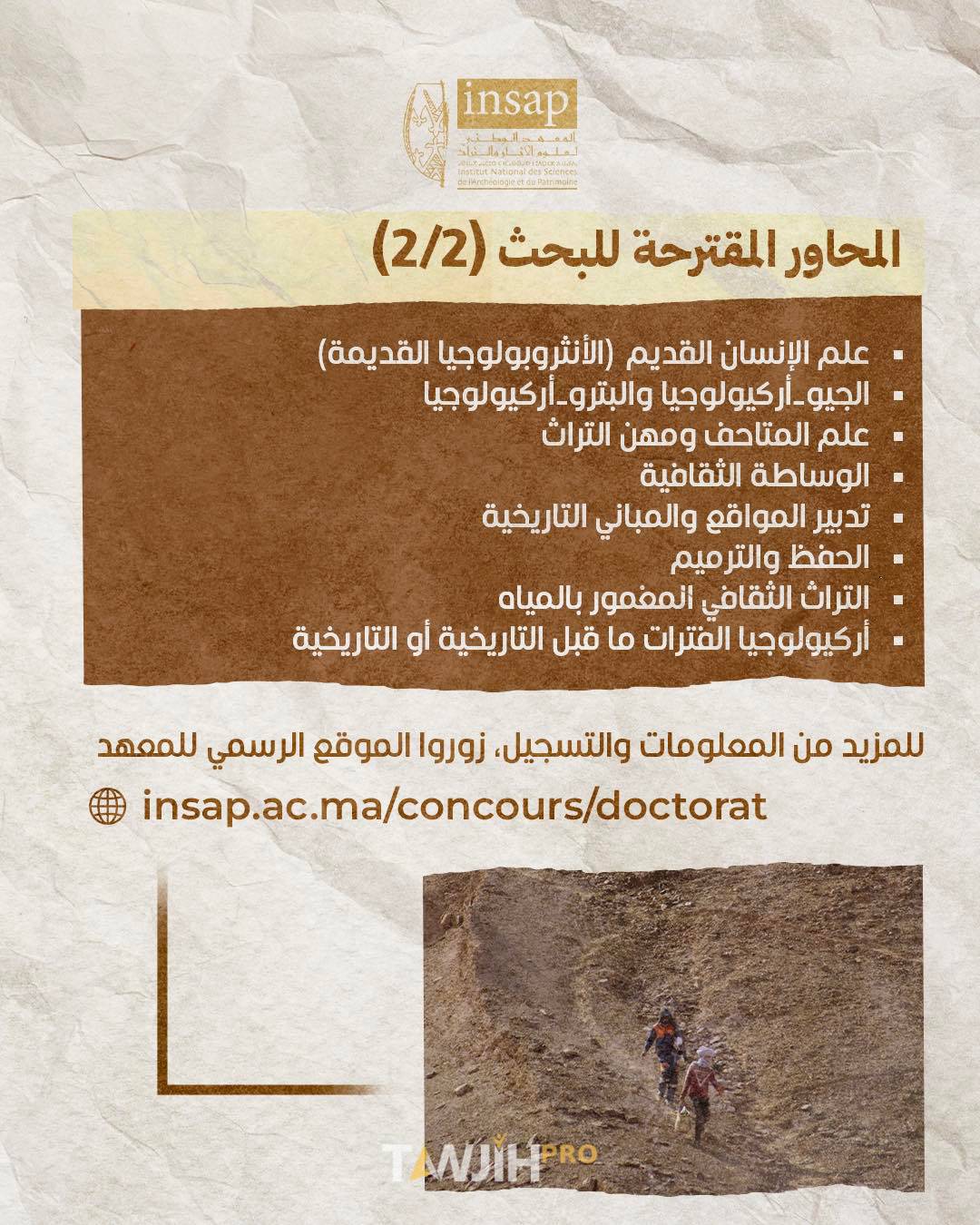 يعلن مدير المعهد الوطني لعلوم الآثار والتراث عن فتح باب الترشيح للتسجيل بسلك الدكتوراه، برسم السنة الجامعية 2025-2026، وذلك وفق البرنامج الزمني التالي: