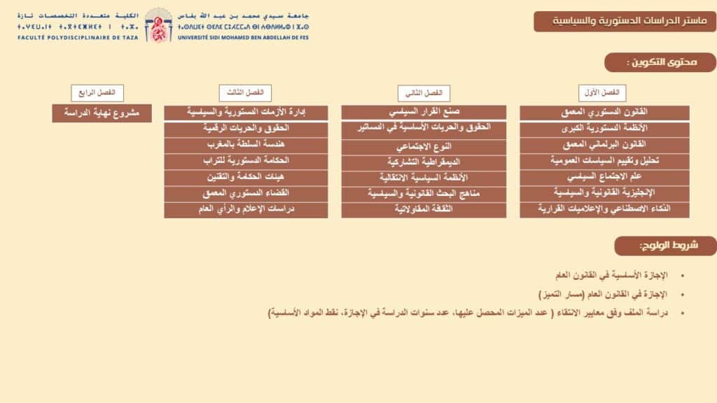 – تكوين أفواج من الخريجين الحاملين للمعرفة الدستورية والسياسية المتخصصة والمعمقة.