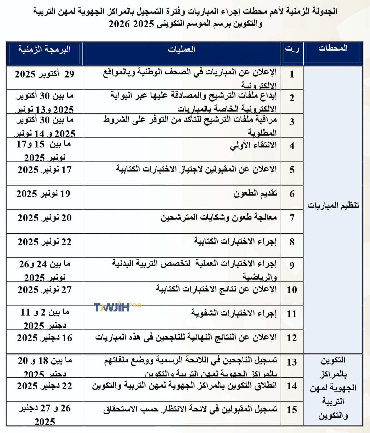 – ينطلق التكوين بالمراكز الجهوية لمهن التربية والتكوين يوم 22 دجنبر 2025؛