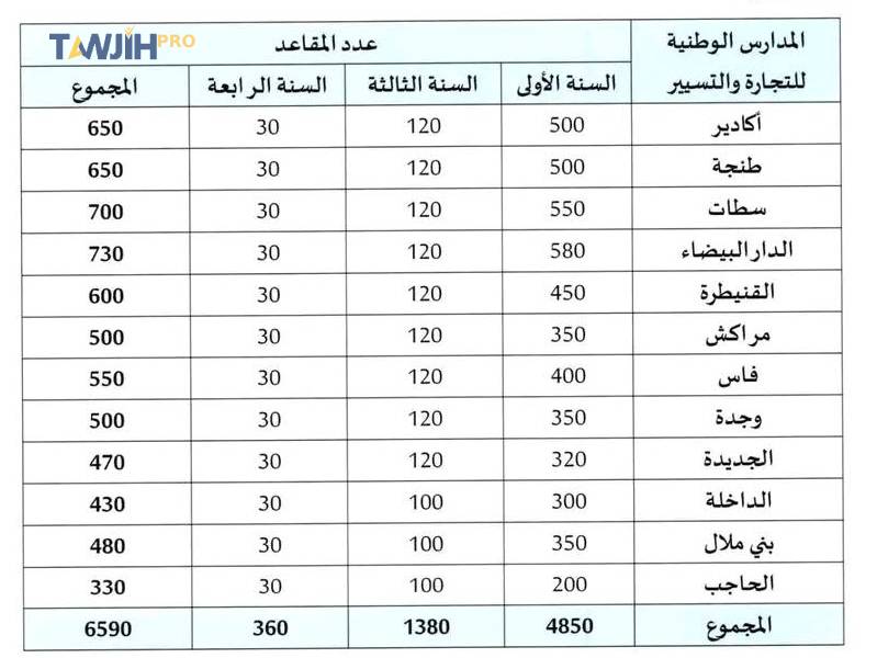 حدد عدد المقاعد المتبارى في شأنها لولوج المدارس الوطنية للتجارة والتسيير، برسم السنة الجامعية 2025-2026، كما يلي:
