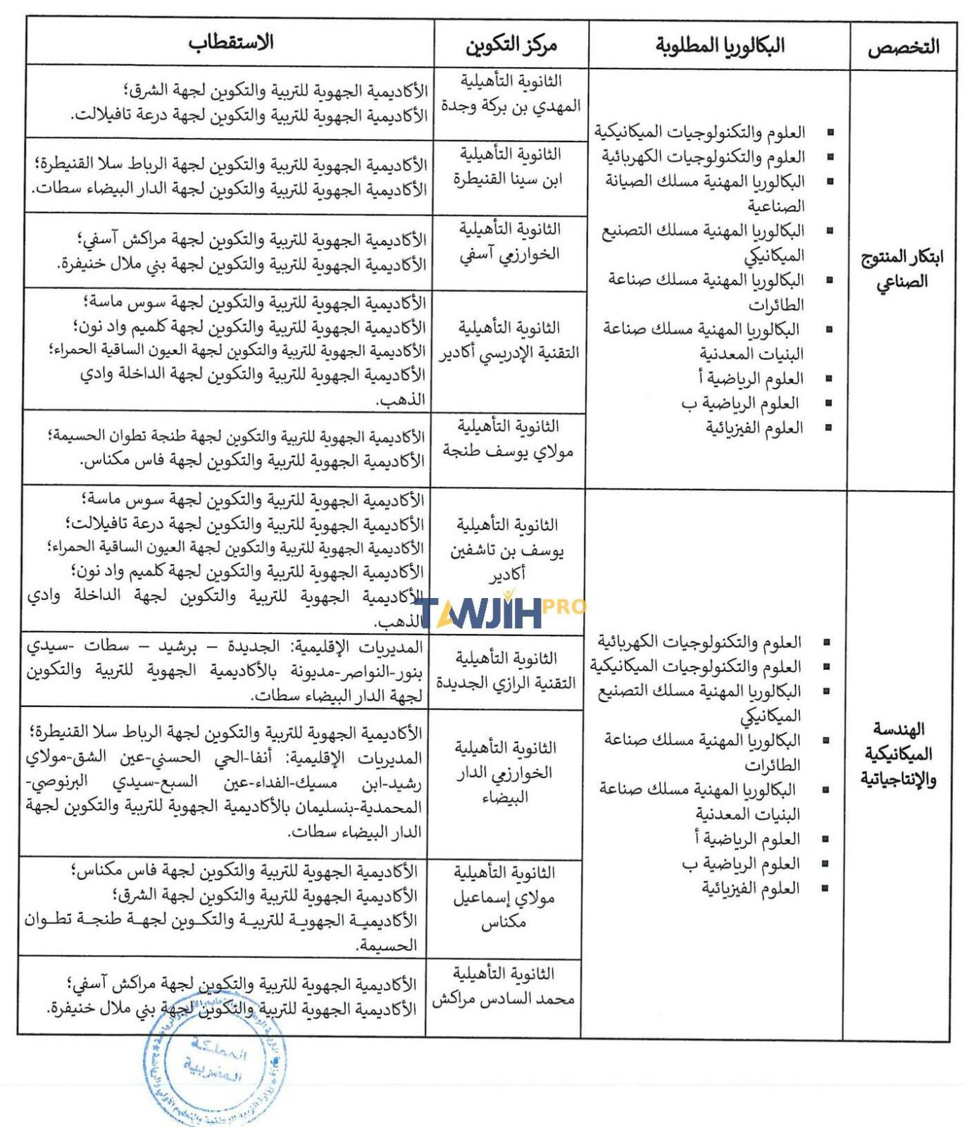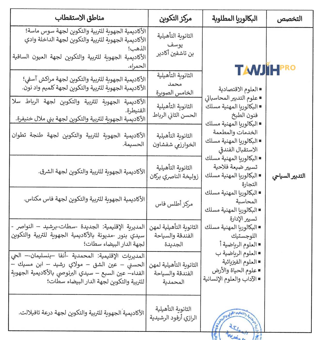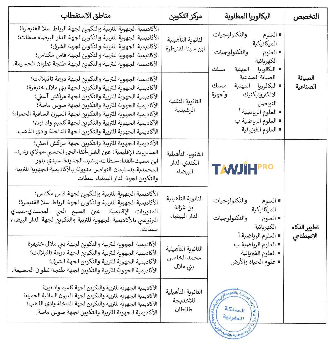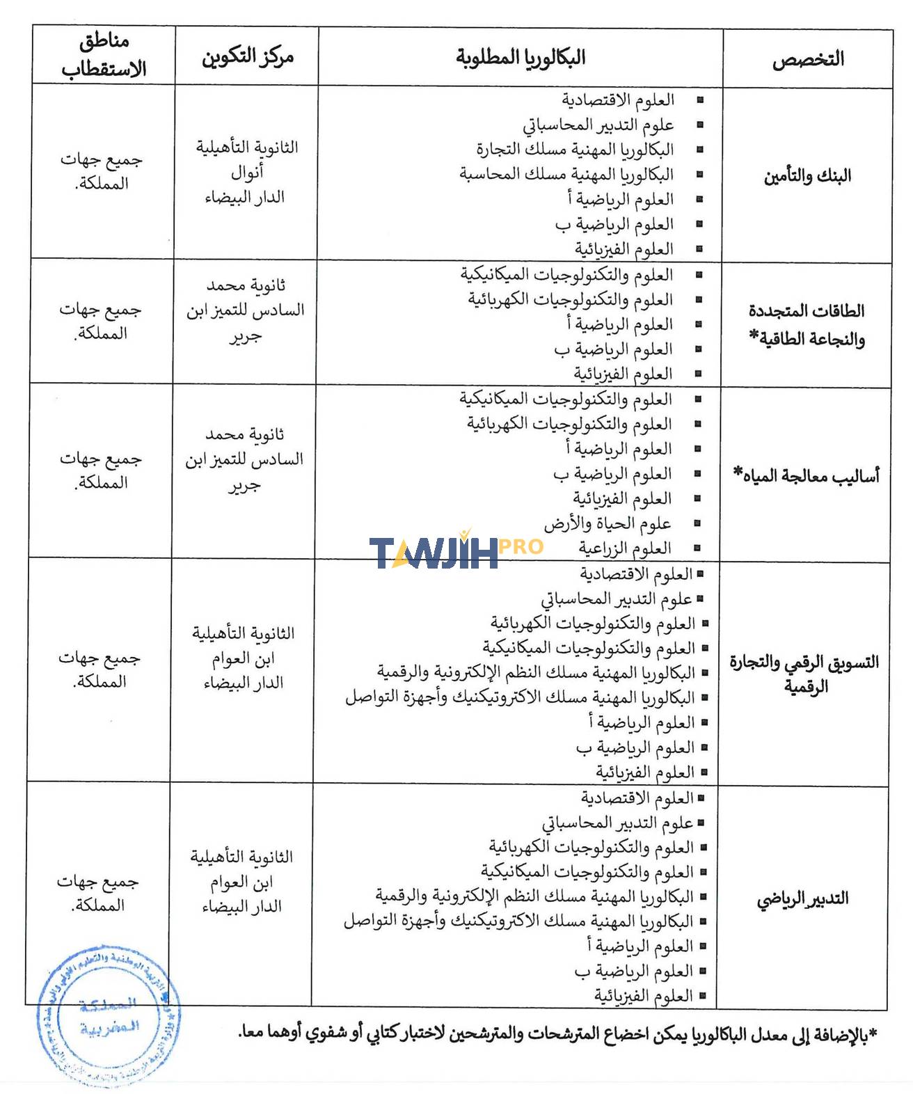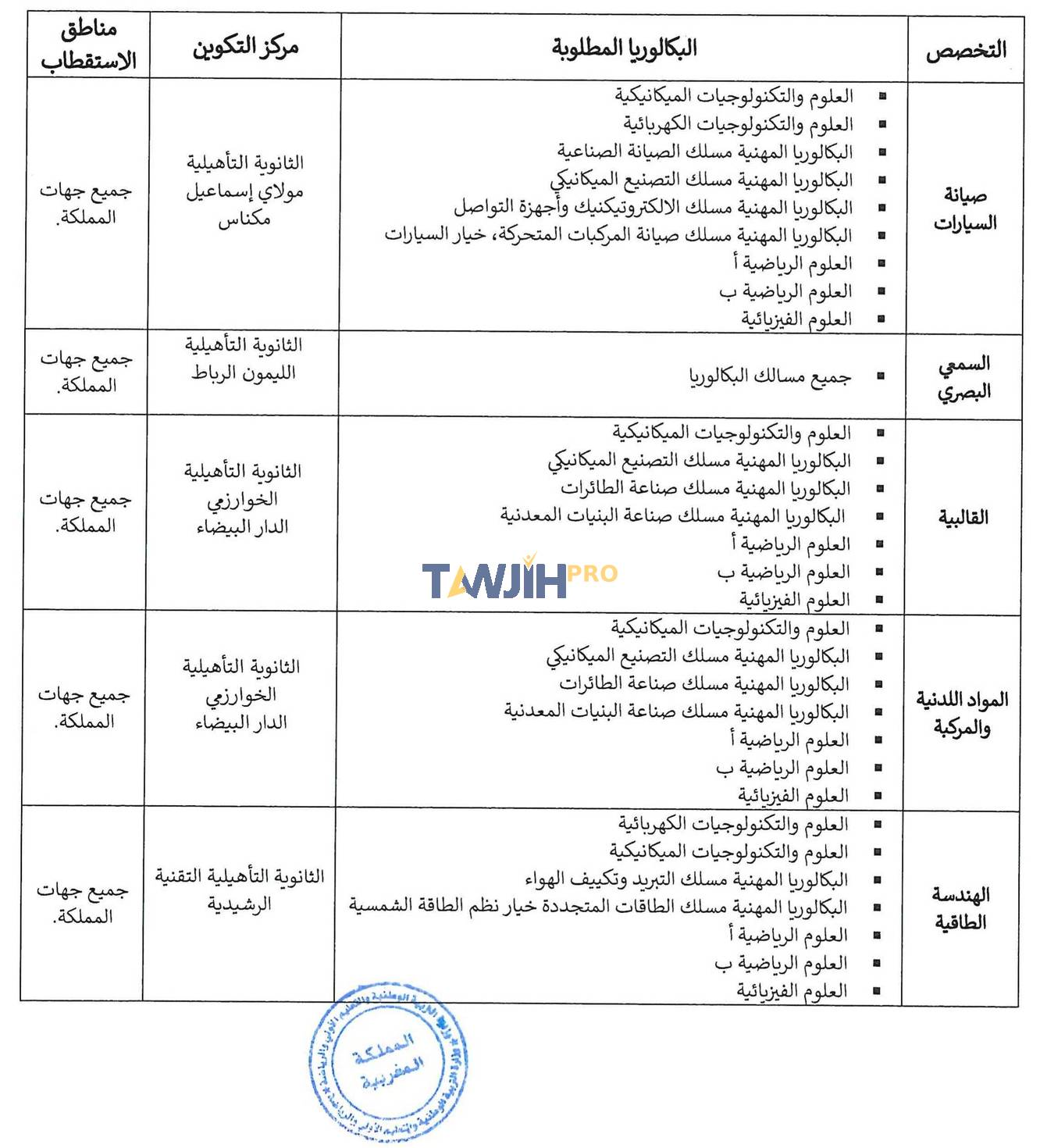 – الحصول على شهادة البكالوريا أو شهادة معادلة لها في أحد التخصصات المناسبة للتكوين والمحددة في جداول مناطق الاستقطاب رفقته؛