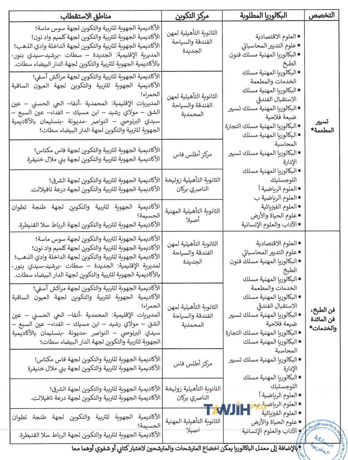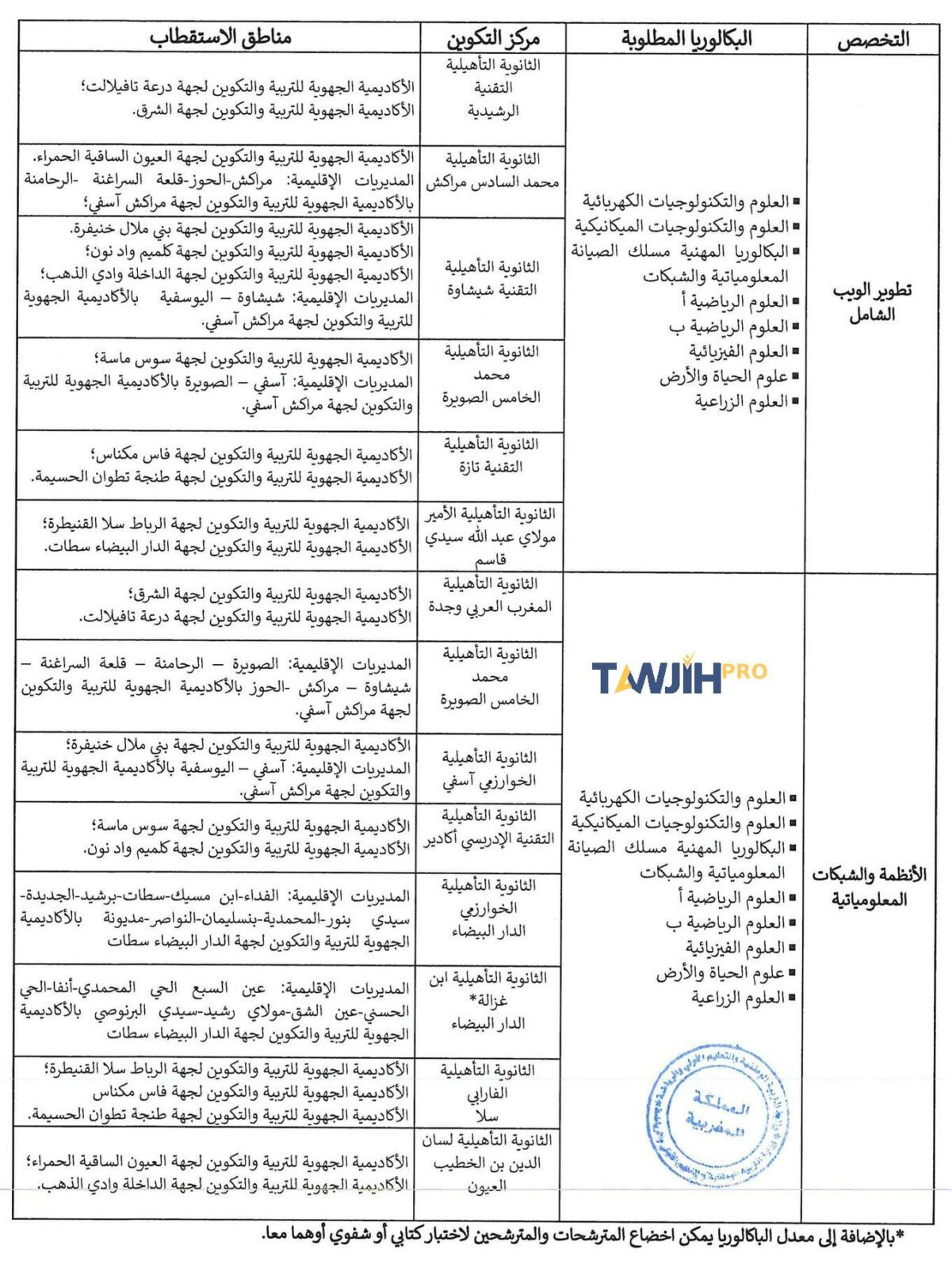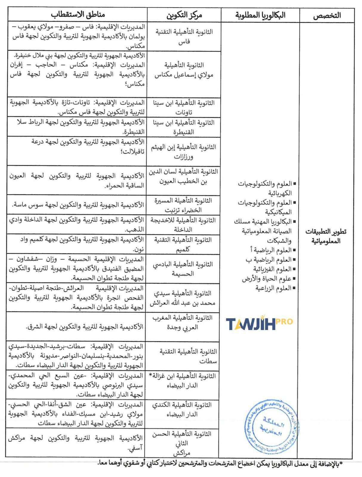 في حالة تسجيل أقل من 15 طالبة وطالبا بالقسم يتم تحويل المسجلين إلى أقرب مركز يتوفر على نفس التخصص أو تخصص مماثل له كلما أمكن ذلك.