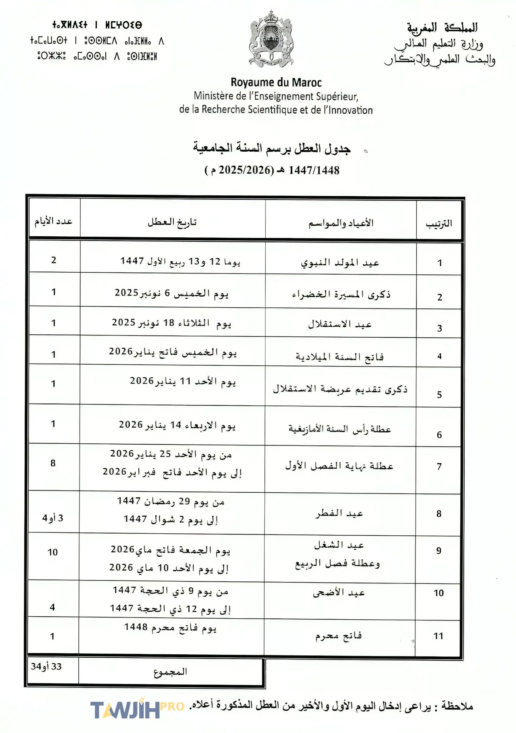 الصفحة الرئيسية توجيه لائحة العطل المدرسية 2025-2026 : جدول العطل الرسمية